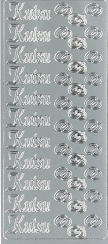 Ääriviivatarra Kutsu -tekstillä ja sormuksilla.