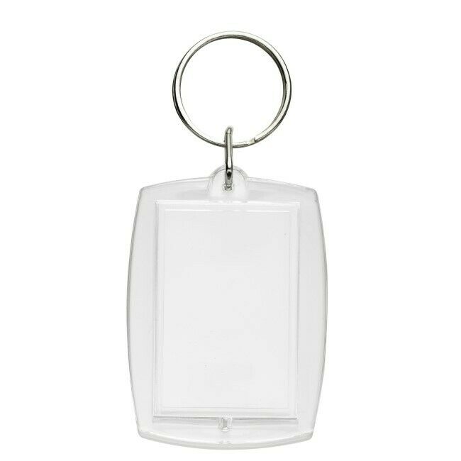 Avattava avaimenperä, valmistettu kirkkaasta muovista valokuvaa tai kuvaa varten. Suorakulmio, 40x52 mm. Kuvan kok 31x41 mm.