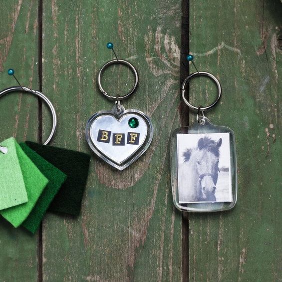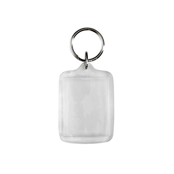 Avattava avaimenperä, valmistettu kirkkaasta muovista valokuvaa tai kuvaa varten. Suorakulmio, 40x52 mm. Kuvan kok 31x41 mm.