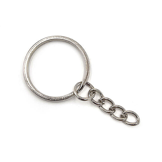 Nikkelitön avainrengas ketjulla askarteluun ja korujen valmistukseen. Pakkaus sisältää viisi kappaletta metallisia avainrenkaita, joissa on ketju mukana.