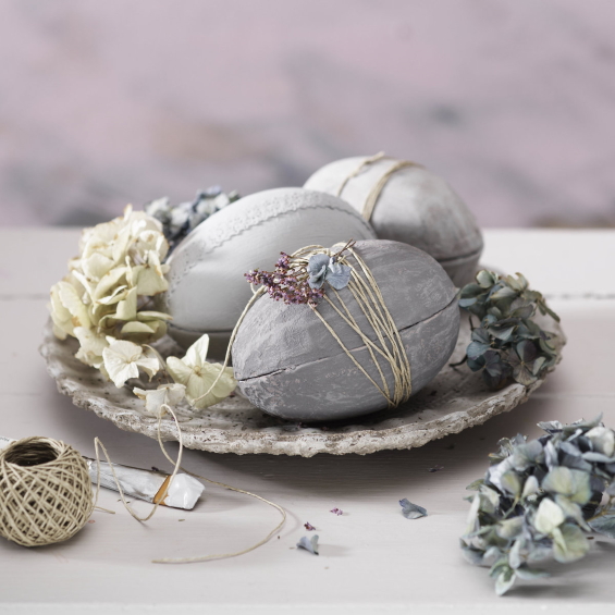 Kun esine on maalattu, voit jatkaa työskentelyä ja rakenteiden luomista siveltimellä, veitsellä, sienellä, lastalla tai vastaavalla. Kun maali on kuivunut, voit hioa sen myös hiekkapaperilla, jos haluat kuluneemman ja käytetyn ilmeen. Tärkeää on mainita, että maali ei sovellu ulkokäyttöön, koska se ei kestä pakkasia. Suosittelemme, että maalaat maljakoita ja ruukkuja vain ulkopuolelta. Kuivumisaika 2 tuntia, enemmän todella paksuilla värikerroksilla. Täysin kuiva ja hiontavalmis pinta on vasta 24 tunnin kuluttua. Puhdista kaikki välineet vedellä.