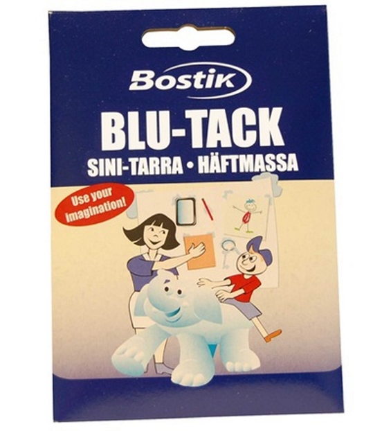 Kiinnittää paperia, julisteita, koristeita jne. Sinitarra on vedenkestävä, uudelleen käytettävä tarramassa. Massa ei kuivu, kestää kosteutta ja lämpöä. Tuote on hajuton.