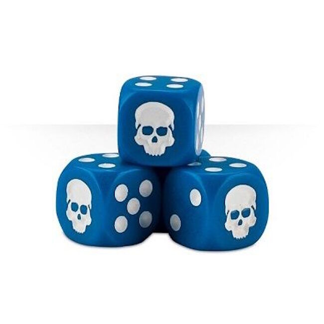 A hard-wearing, tough plastic cube containing 20 blue 12mm dice with skull icons in place of the 1, this dice cube features an embossed skull lid (you can never have too many skulls, after all) and is stackable – create your very own multicoloured henge of dice!