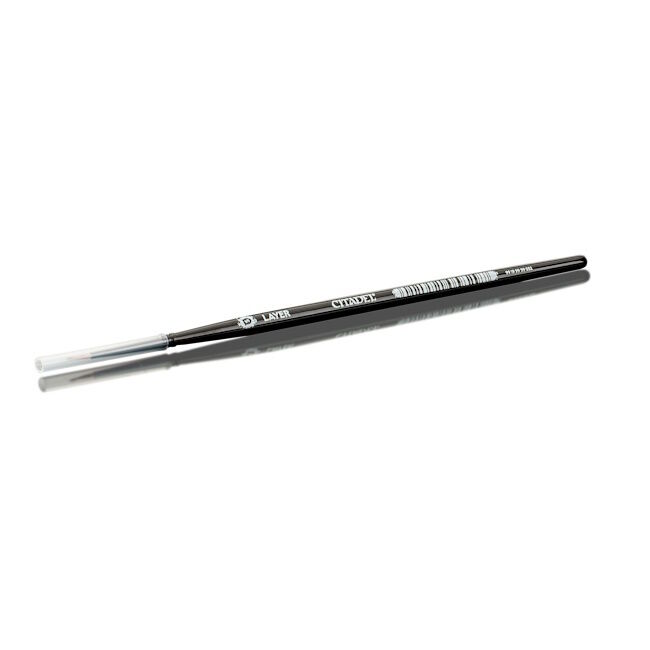 This small brush (S Layer) - perfect for layering - is hand made, with pure sable bristles in a fine point meaning exceptional control - sometimes the tiniest details make a huge difference, and this brush has been designed to help you nail the feeling of a great miniature painted well.