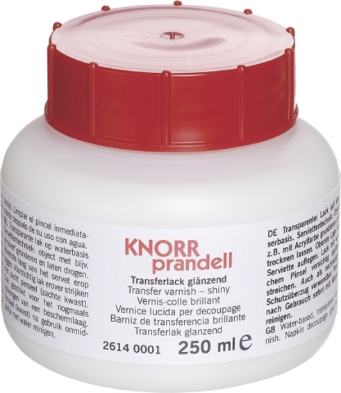 Kiiltävä decoupagelakka lautasliinojen tai muun paperin kiinnittämiseen.