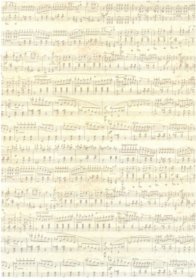 Designkartonki nuottivihkokuosilla. A4, 160g. Paketissa 5 arkkia.
