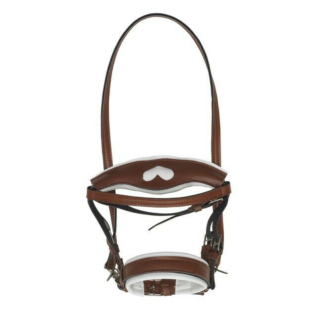 Aseta pehmeä kaksoisommeltu nenänauha kuono-osaan ja kiristä tarvittaessa, avaa sitten leveä niskakappale ja kiristä se. Niskaosa on erittäin leveä mukavuuden vuoksi, ja sitä koristaa kaunis veistetty sydän. Niskakappale, nenänauha ja sivukappaleet on helppo säätää tarvittaessa. Riimussa on myös ohjakset, jotka voidaan irrottaa.