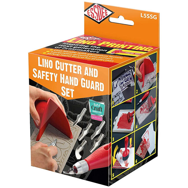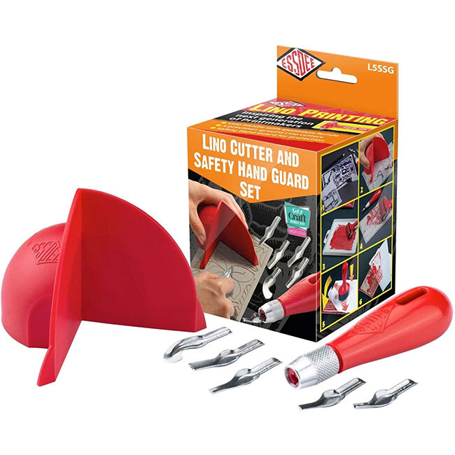 Tämä linoleikkaus- ja käsisuojasarja antaa aloitteleville taiteilijoille mahdollisuuden pitää kätensä turvassa linopainatuksen aikana. Monet ihmiset veistävät työtä pitelevää kättä kohti, mikä voi aiheuttaa loukkaantumisen. Käsisuoja pysäyttää seiniinsä osuvat lipsahdukset. Sopii pienimmille tai suurille käsille, sitä voidaan käyttää vasen- tai oikeakätisesti. Se on täydellinen linoleikkaukseen uusille, nuoremmille taiteilijoille ja niille, joiden kätevyys on rajallinen. T
