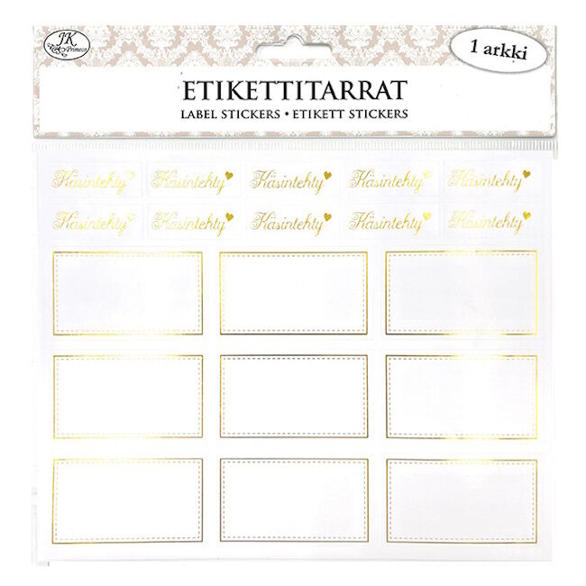Etikettitarrat paketointiin, askarteluun ja koristeluun.