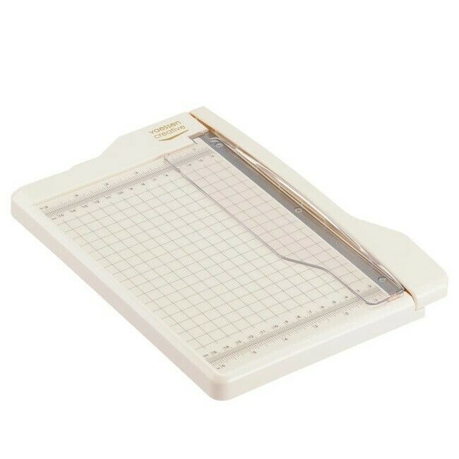Tämä giljotiinipaperileikkuri sopii ihanteellisesti paperin, pahvin, softiksen, korkin, huovan ja vinyylin leikkaamiseen. Voit leikata vaivattomasti erilaisten max. 21,6 x 15,2 cm:n materiaalien läpi jopa seitsemällä 80 g/m²:n arkilla kerralla. Koot näkyvät tuumina ja senttimetreinä. Leikkuri on kevyt, mikä tekee siitä erittäin kätevän käyttää. Hyvä paperileikkuri korttien valmistukseen, lkalentereihin ja muihin pieniin projekteihin.