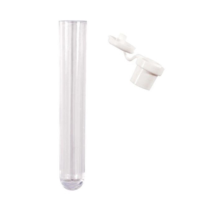 Tyhjät putkilot korkilla. Putkilon koko 8 x 1 cm.