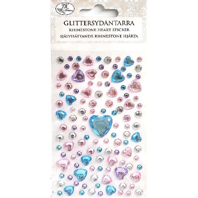 Pakkauksessa lajitelma glittertarroja, 5 eri kokoa/4 eri väriä.