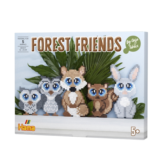 Metsäystävät, pakkaus josta teet suloiset metsäneläimet. Pakkauksessa kettu, kaksi pöllöä, kani ja orava. Hahmojen korkeus 12-21cm. Tämä uusi helmipakkaus nostaa harrastuksen uudelle tasolle ja pitää sinut kiireisenä pitkään.