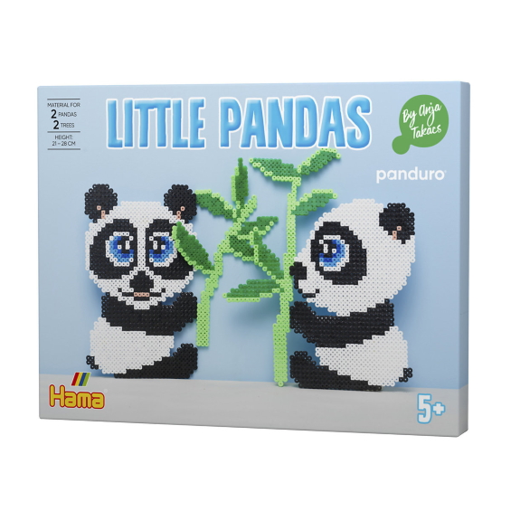 Pikku Pandat, pakkaus josta teet suloiset pandat bambuineen. Pandat ovat 21-22 cm korkeita ja bambut 21 ja 28 cm korkeita. Tämä uusi helmipakkaus nostaa harrastuksen todella uudelle tasolle ja pitää sinut kiireisenä pitkään.