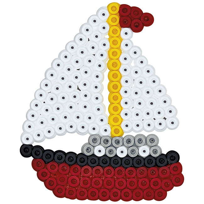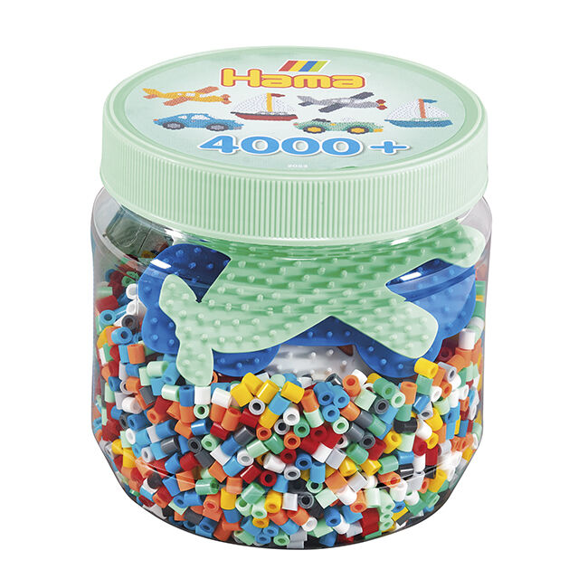 Purkki sisältää noin 4000 helmeä, 3 pientä alustaa – auto, purjevene ja lentokone – mallikuvia, ohjeet ja silityspaperia. Ikäsuositus 5+.