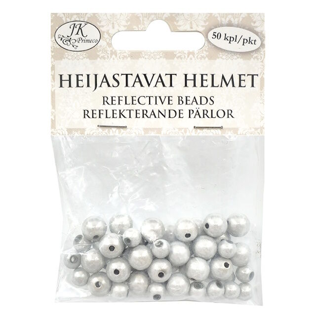 Pakkauksessa 50 heijastavaa helmeä/2 eri kokoa.