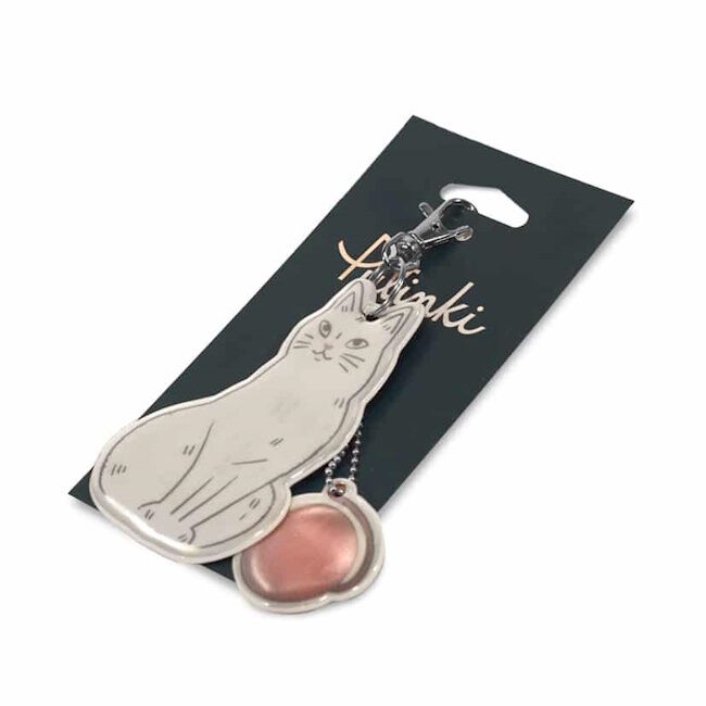 Suomalainen design heijastin kissan kuvalla. Sisältää papukaijalukon ja palloketjun. Heijastin on CE (EN 13356)-merkitty. Tyyppitarkistettu, heijastin täyttää EU:n henkilönsuojainasetuksen 2016/425. Sisältää pieniä osia, ei sovellu alle 3-vuotiaille. Koko: 7 x 11 cm (kissa) 5 x 5 cm (kerä). Palloketju: 7 cm. Design: Kaisu Sandberg. Valmistettu Suomessa.