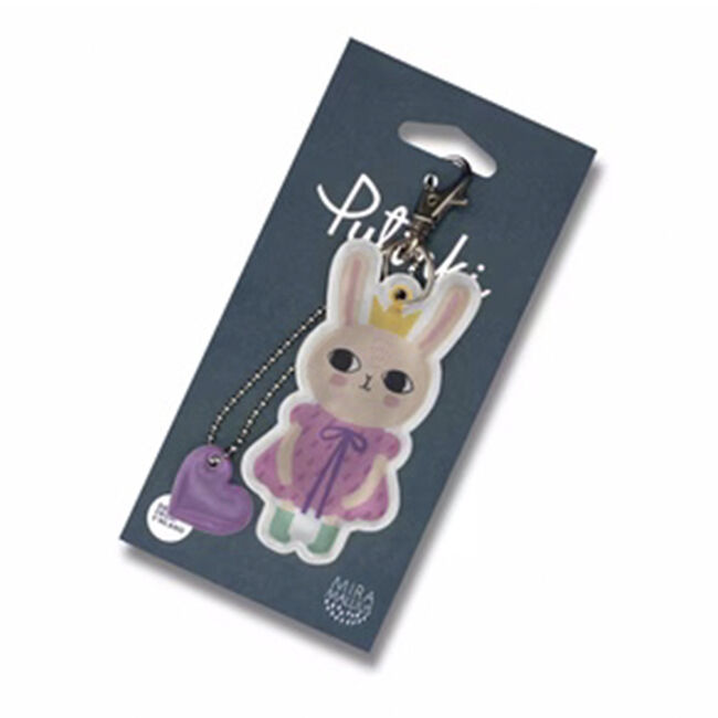 Suomalainen design heijastin, aiheena pupu, jolla on kruunu päässä ja sydän. Sisältää papukaijalukon ja palloketjun. Heijastin on CE (EN 13356)-merkitty. Tyyppitarkistettu, heijastin täyttää EU:n henkilönsuojainasetuksen 2016/425.