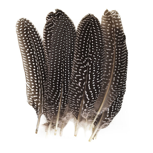 Pakkaus sisältää noin 15 höyhentä. Höyhenet ovat peräisin helmikanoista (alkuperämaa Kiina).