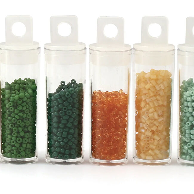 Tämä "Helmikioski" siemenhelmisetti sisältää 6 kpl 8g putkiloa siemenhelmiä upeissa väreissä.