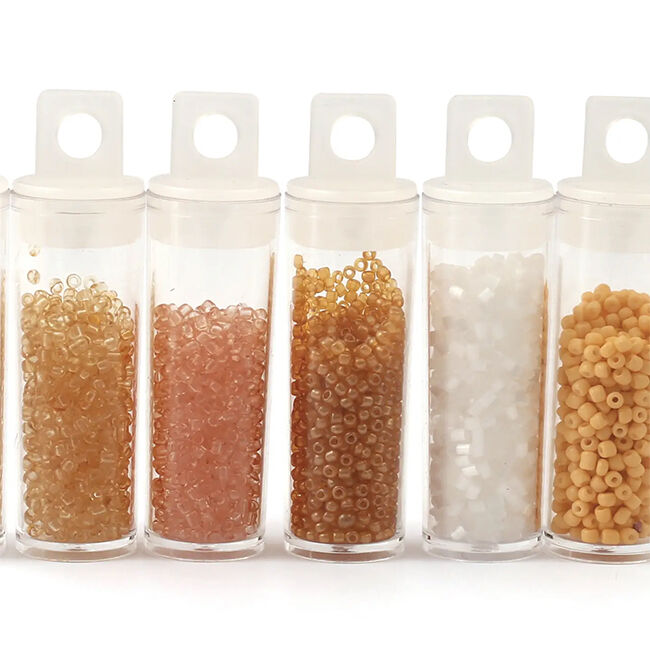 Tämä "Helmikioski" siemenhelmisetti sisältää 6 kpl 8g putkiloa siemenhelmiä upeissa väreissä.