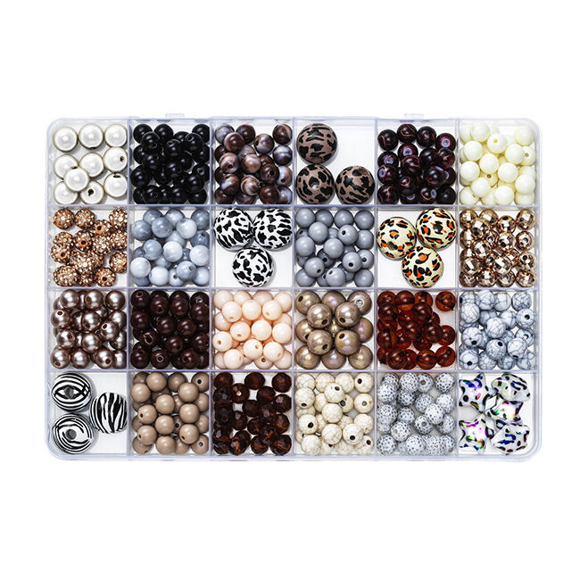 Ja villimmäksi se muuttuu! 24 lokeroa sisältävät väriä vaihtavia tähtihelmiä, pyöreitä yksivärisiä helmiä eri kiilloilla, läpinäkyviä lasihelmiä, kimaltelevia, fasettikuvioituja diskopallohelmiä, glitterhelmiä, marmorikuvioisia helmiä ja viimeisenä – mutta ei vähäisimpänä – suuria puuhelmiä eläinkuvioilla. Joten kaiva esiin koko helmi- ja lankavalikoimasi, aika tehdä jotain ennennäkemätöntä helmihelmillä!