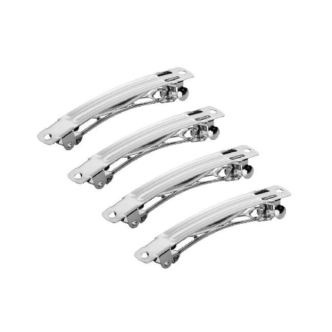 Hiussoljet, metallista jolla on hyväksytty nikkelipitoisuus. Suunnittele omat hiustensoljet esim. koruja, helmiä, kiviä, koriste-painikkeita, paljetteja jne. Koriste voidaan kiinnittää langalla (käytettävissä olevat reiät) tai liimalla. 60x8mm. 4kpl.