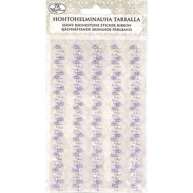 Hohtohelmitarranauha askarteluun ja koristeluun. Pakkaus sisältää viisi hohtohelminauhaa, joissa on tarra takana.