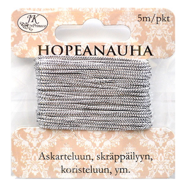 Ohut hopeanauha askarteluun ja koristeluun. Sopii erityisesti koristeiden ripustuslangaksi.
