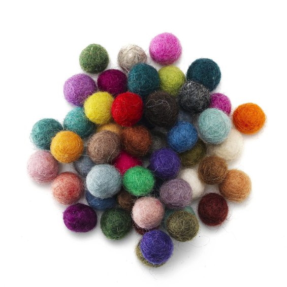 Nepalvilla, huovutettua lampaanvillaa. 50 kpl pakkaus. Väriseos, Ø 10 mm.