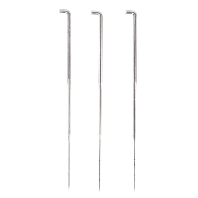 Ohuita huovutusneuloja, 3 kpl. Neulojen pituus 78 mm.