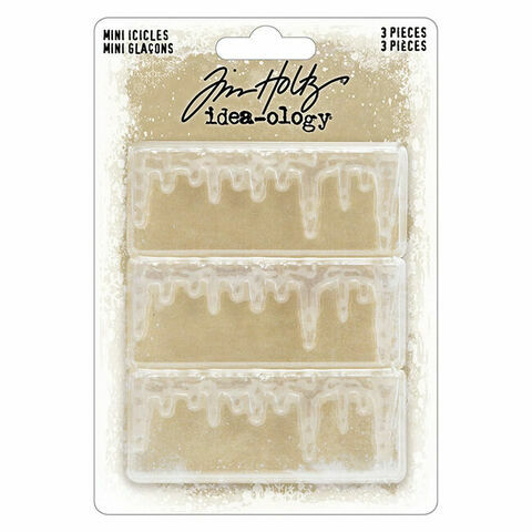 Tim Holtz Idea-ology Joulu 2025. Tuo jääkylmää kimallusta talvimaisemiisi Tim Holtz Idea-ology Mini Icicles -jääpuikoilla. Nämä kristallinkirkkaat koristeet jäljittelevät tippuvia jääpuikkoja ja sopivat täydellisesti kattojen, laput, koristeiden tai vinjettien koristeluun jäisen elegantilla tavalla. Sisältää kolme kirkasta, muovattua muovista jääpuikkosuikaletta. Realistiset tippuvat yksityiskohdat lisäävät talvista viehätysvoimaa. Helppo leikata, liimata ja muotoilla tarpeen mukaan. Ihanteellinen juhlakoristeisiin, kortteihin ja dioraamoihin. Sopii kauniisti yhteen lumisten ja huurteisten elementtien kanssa.