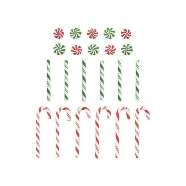 Tim Holtz Ideaology Makeiset. Olkoon lomasi yhtä suloinen kuin nämä pienet raidalliset karamellit ja karamellikepit, jotka sopivat täydellisesti köynnöksiin, kransseihin, lahjoihin, mittaprojekteihin tai askarteluun. Täytä Tim Holtz Display Dome tai käytä niitä mittaelementteinä vinjettilaatikossa. Pyöreät karamellit ovat halkaisijaltaan n. 2cm, karkkikepit n. 5cm ja tikut n. 4cm pitkiä. Valmistettu hartsista. 22 kpl.