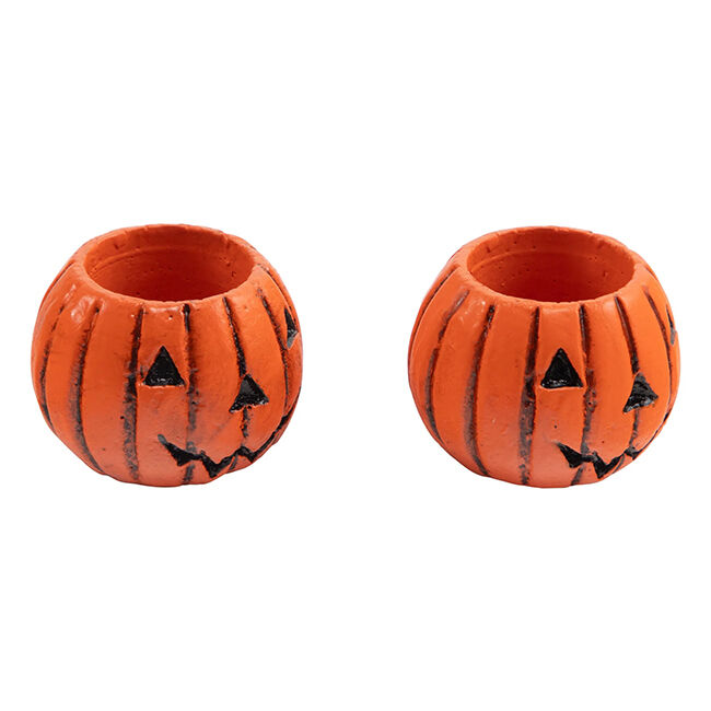 Sisältää kaksi realistista kurpitsalyhtyä, joissa on kaiverretut kasvot. Täydellinen kolmiulotteiseen Halloween-askarteluun ja dioraamoihin. Kevyt ja tukeva hartsirakenne. Lisää hauskaa, vintage-Halloween-henkeä luomuksiisi. Ihanteellinen vinjetteihin, tarjottimiin ja juhlakoristeisiin.