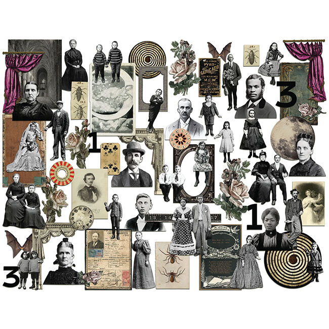 Täydellisen aavemaisia Halloween- ja goottilaisiin askarteluun. Painettu paksulle ja kestävälle kartongille kerrostusta ja ulottuvuutta varten. Loistava taidepäiväkirjaan, scrapbookingiin ja tarinankerrontaan. Lisää välittömästi vintage-henkistä kammottavaa tunnelmaa mihin tahansa projektiin.