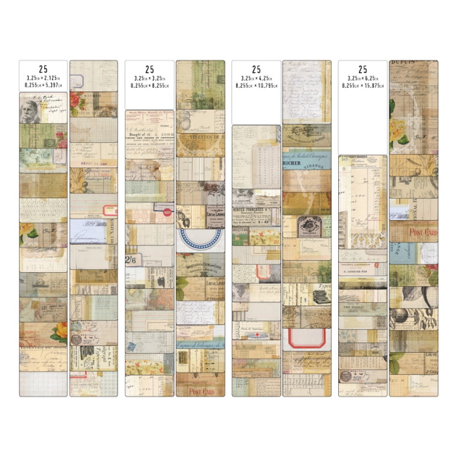 Sisältää 100 kaksipuolista korttia, 25 kutakin kokoa.