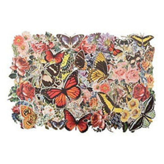 Monipuolinen kokoelma painettuja leikekuvioita. Vintage-mainoksia, kortteja, lippuja, esitteitä jne.