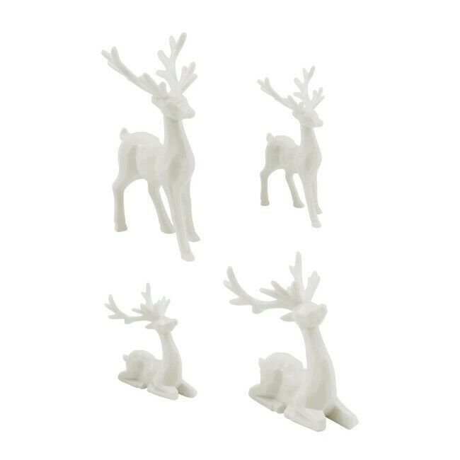 Kolmiulotteinen ja ah niin söpö. Nämä Tim Holtzin peurat ovat hartsihahmoja, joita voidaan muokata maaleilla, musteilla tai glitterillä ja lisätä mihin tahansa sisustusesineeseen, muuntamiseen taideprojektiin tai käsintehtyyn lahjaan. Iso seisova poro 7,5 cm, iso makaava peura 5 cm, pieni seisova peura 5 cm, pieni makaava peura 4,5 cm korkea.