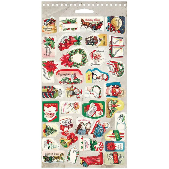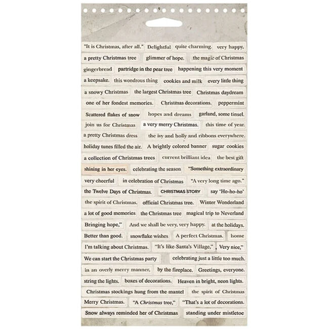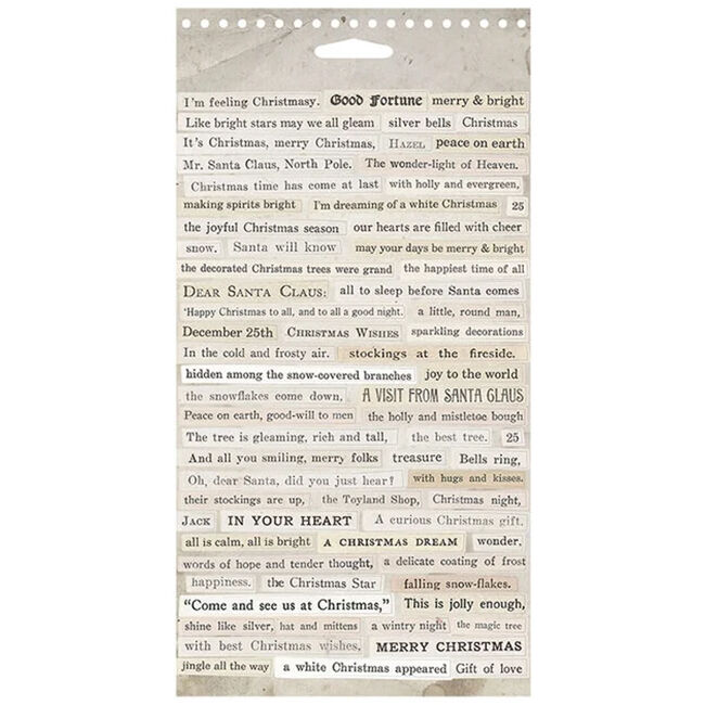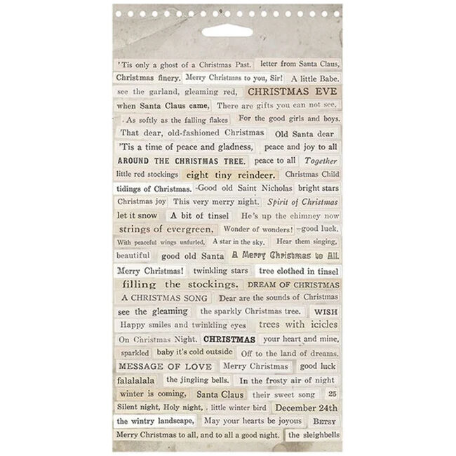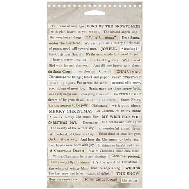 Tim Holtz Idea-ology Joulu 2025. Tämä juhlava vihko sisältää 490 tarraa, jotka sisältävät lauseita, etikettejä, vinatge-kuvia ja koneella kirjoitettuja ajatuksia, jotka lisäävät iloa ja viehätystä jokaiseen joululuomukseen. Helppokäyttöinen tarrakiinnitys nopeaan koristeluun. Sopii erinomaisesti kortteihin, lahjalappuihin, päiväkirjoihin ja sekatekniikkaan. Sopii täydellisesti Tim Holtz Idea-ology -joulutuotteiden kanssa.