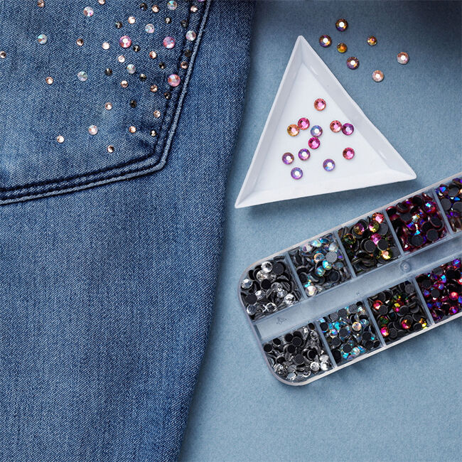 Silitettävät strassit. Pyöreät ja hiotut strassit. joiden alapinnassa on kuumaliimalla. Kivet on tarkoitettu tekstiileille. Nämä kauniit koristekivet todella saavat vaatteet ja kodin sisustuksen kimaltelemaan. Täydellinen uuden elämän tuomiseen vanhoihin t-paitoihin, farkkuihin jne. Miksi heittää pois vaatteita, kun niistä voi tehdä jotain uutta ja tyylikästä? Silitettävät kivet kestävät hellävaraista pesua 35 °C:ssa ja ne on pestävä nurinpäin käännettynä tai pyykkipussissa. Pakkaus sisältää noin 1600 kiveä, Ø2–4 mm.