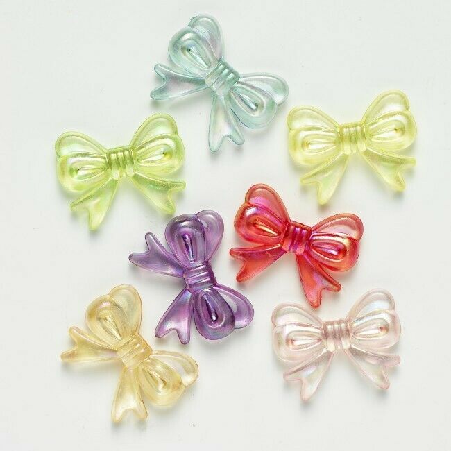 Rusettihelmet – suuret kauniit helmet, läpinäkyvissä värikkäissä väreissä! Rusetit ovat aina kauniita, olivat ne sitten hiuksissasi tai juhlamekkoon kiinnitettyinä. Tietenkin ne näyttävät hyvältä myös leikkisissä rannekoruissa tai kaulakoruissa.