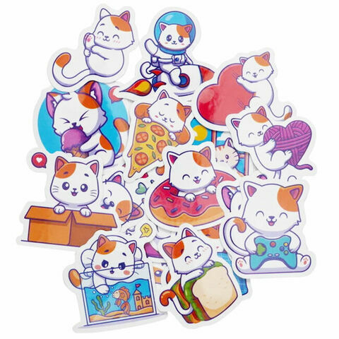 Isoja ja hienoja tarroja, joissa on paljon värikkäitä, söpöjä ja kawaii-kissoja! Täältä löydät kissoja nukkumassa, kahvittelemassa, skeittaamassa, pelaamassa videopelejä ja halaamassa sydämenmuotoisia lankakeriä jne. Lyhyesti sanottuna, kissa jokaiseen tilanteeseen!
