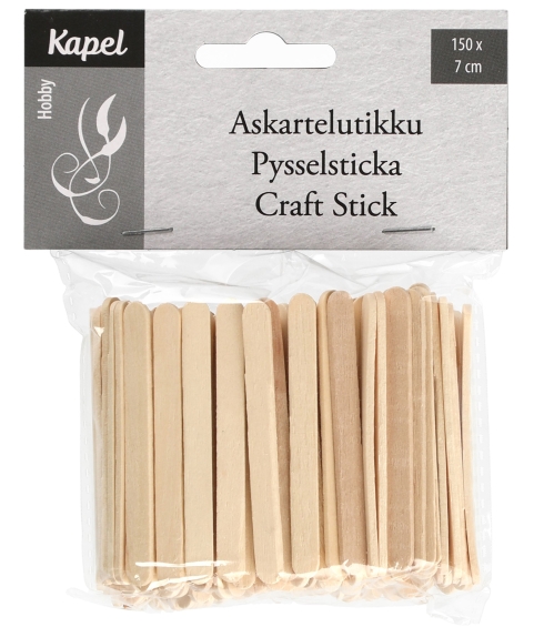 Tikun koko 70 x 7 x 2 mm. Käsittelemätöntä puuta.