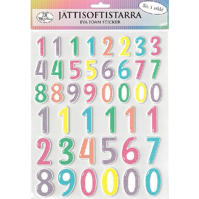 | Jättisoftistarra-arkki Numerot pastelli | ||||