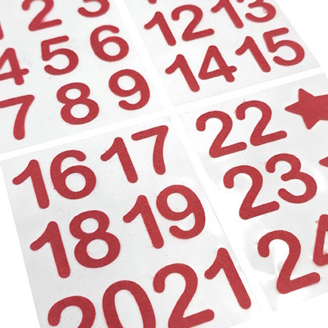 Joulukalenteritarra Huopanumerot punainen 4ark