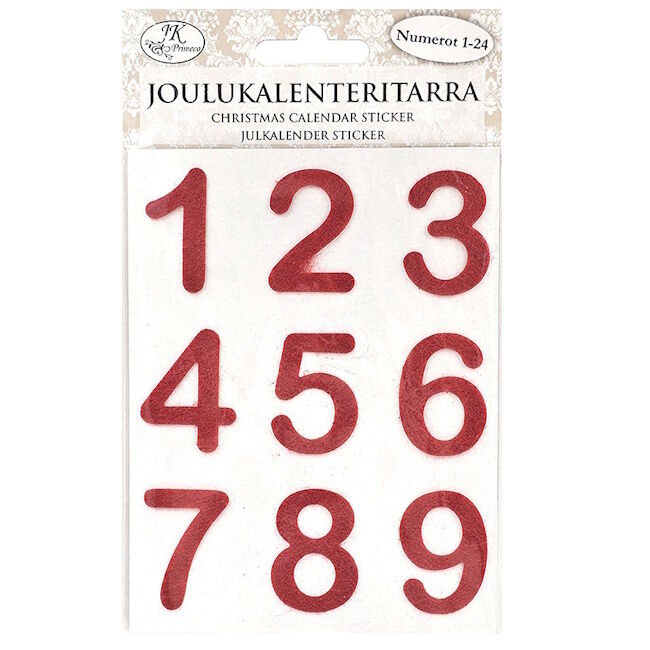 | Joulukalenteritarra Huopanumerot punainen 4ark | ||||
