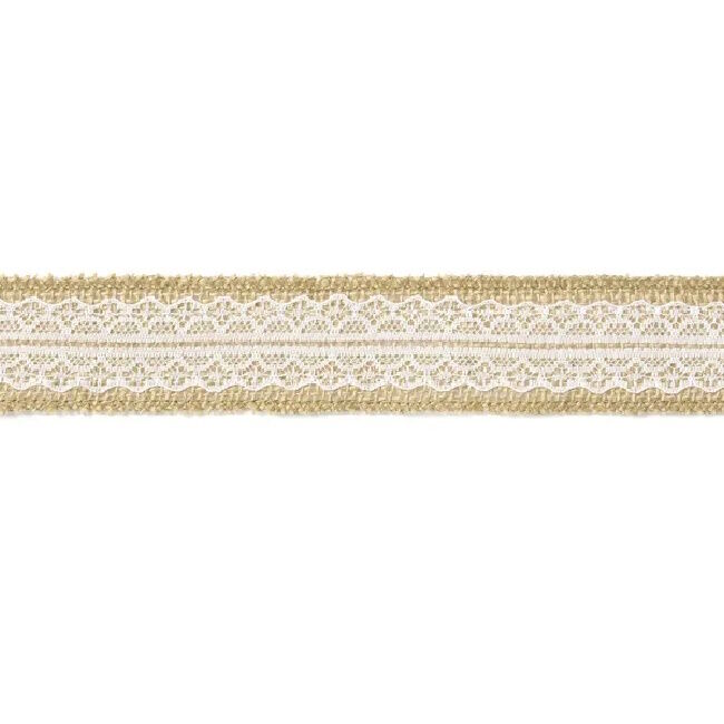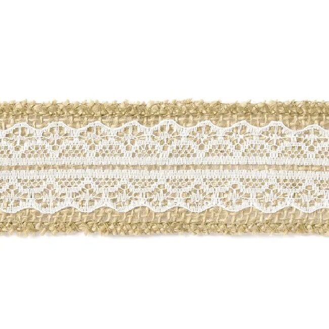Kaunis juuttinauha koristeluun. Leveys noin 4 cm. Pituus 5 m.