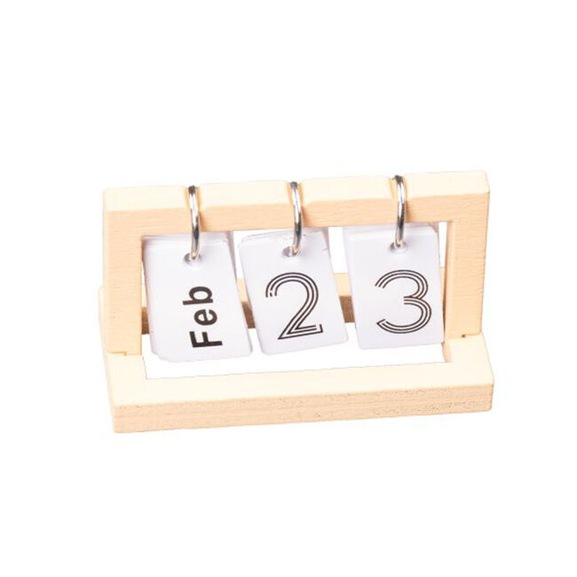Miniatyyri kalenteri, koko noin 4 x 2 cm.