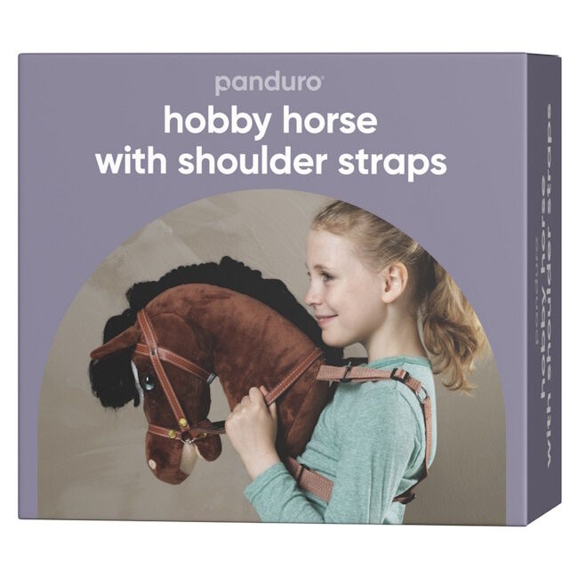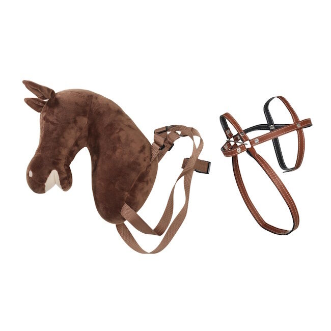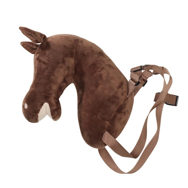 Ruskea keppihevonen olkahihnoilla - siis keppihevonen ilman keppiä, mitä hölynpölyä se on? Mielestämme se on erittäin pehmeä, hauska, aktiivinen ja erittäin luovaa! Hevonen ulkonee n. 30 cm rinnasta, on n. 30 cm korkea kaulasta päähän ja 10–15 cm leveä kuonosta niskaan. Valmistettu polyesteristä ja täytetty pehmeällä vanulla. Hihnat on valmistettu kestävästä nailonista ja niissä on muovinen napsautussolki.