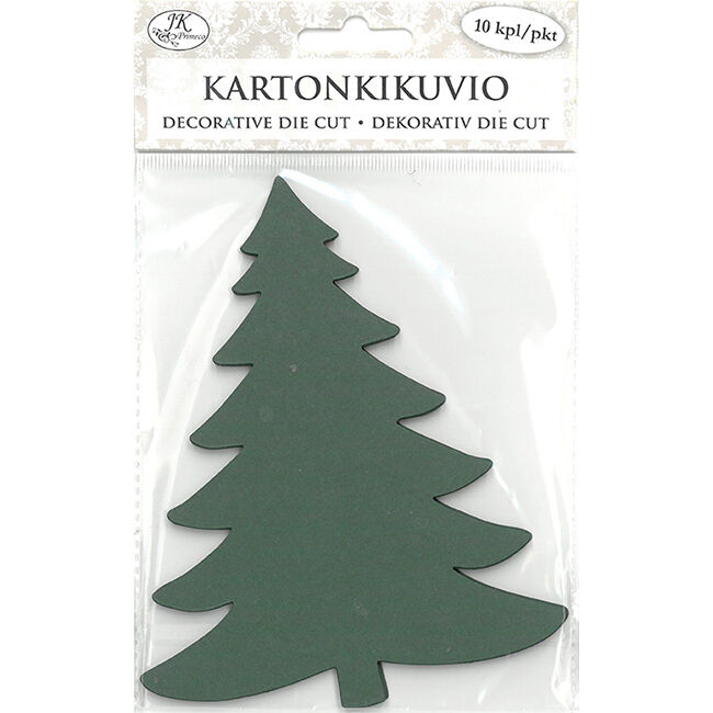 Kartonkikuviot askarteluun ja koristeluun. Aseta kuuset koristeeksi seinälle tai ikkunaan luomaan joulun tunnelmaa. Pakkaus sisältää 10 kappaletta kartonkisia kuusia, joiden korkeus on n. 15cm.